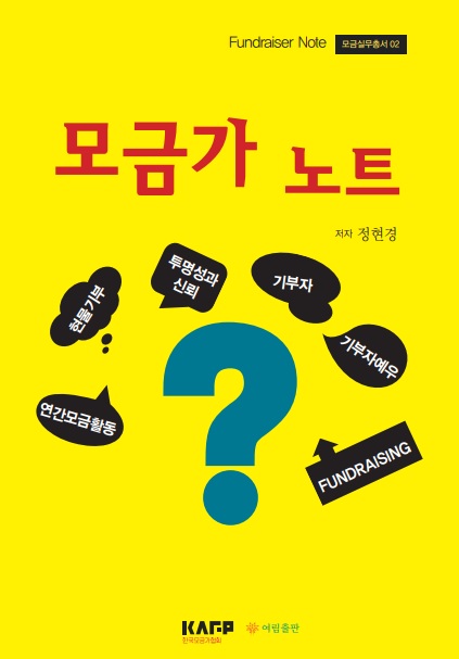 든솔정선 : 저자와 함께 「모금가노트」 클라우드 펀딩을 준비하면서 이 책을 여러번 보았다. 「모금가노트」가 독자에게 전달하고 싶은 것은 ‘모금은 소통이다’라는 것이다. 그동안 내가 어떤 마음으로 기부자를 대했는지 생각해보게 되었고 모금은 혼자 하는 것이 아니라 조직 전체가 한 방향으로 전진하는 것이며, 리더의 방향성이 매우 중요하다는 생각을 갖게 되었다. 또한 모금에 있어서 ‘기부자 예우 정책’이 중요한데 이때 ‘기부자의 알 권리’가 기반이 된 투명성과 신뢰성에 대한 구축을 고민해야 한다. 해외지원사업을 했을 때, 한 분이 자녀이름으로 해당 지역에 우물, 책상, 의자를 기부해 주셨다. 잘 만들지는 못하였지만 현장의 모습과 수혜 대상 아동의 모습을 담은 영상을 보내 드렸는데 기부자가 매우 감동했다. 그 이후에도 지속적으로 기부를 해주셨다. 현장의 이야기, 기부 이후의 변화에 대해 보고 드리는 것이 얼마나 중요한지 체감한 사례이다.