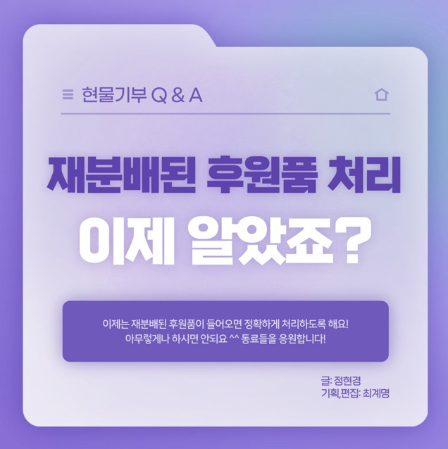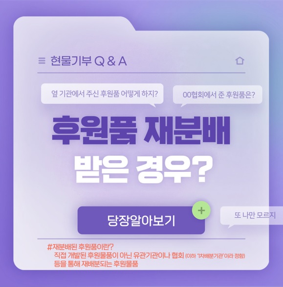 현물기부 Q&A_1. 후원품 재분배 받은 경우지식 공유 2021. 8. 29. 14:21