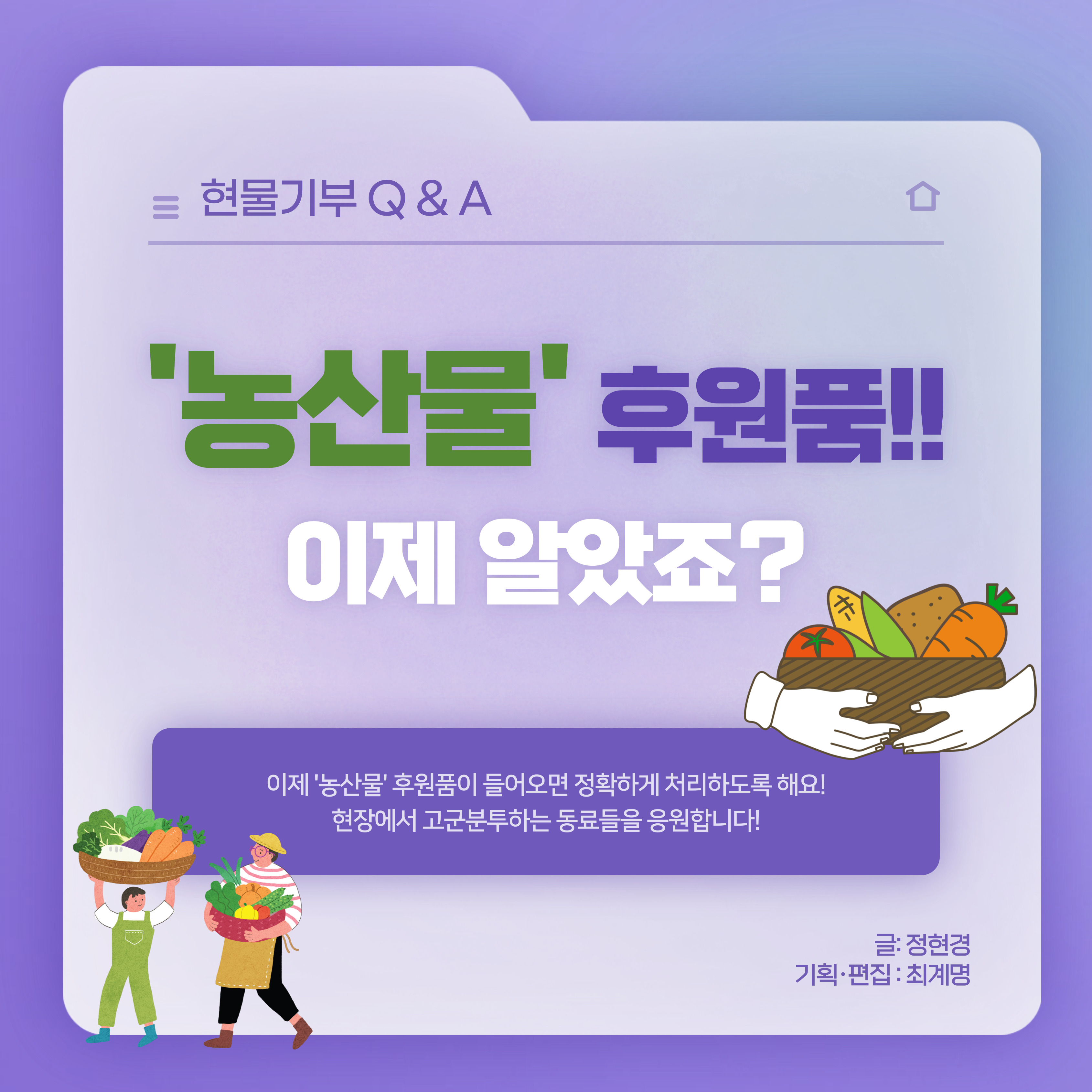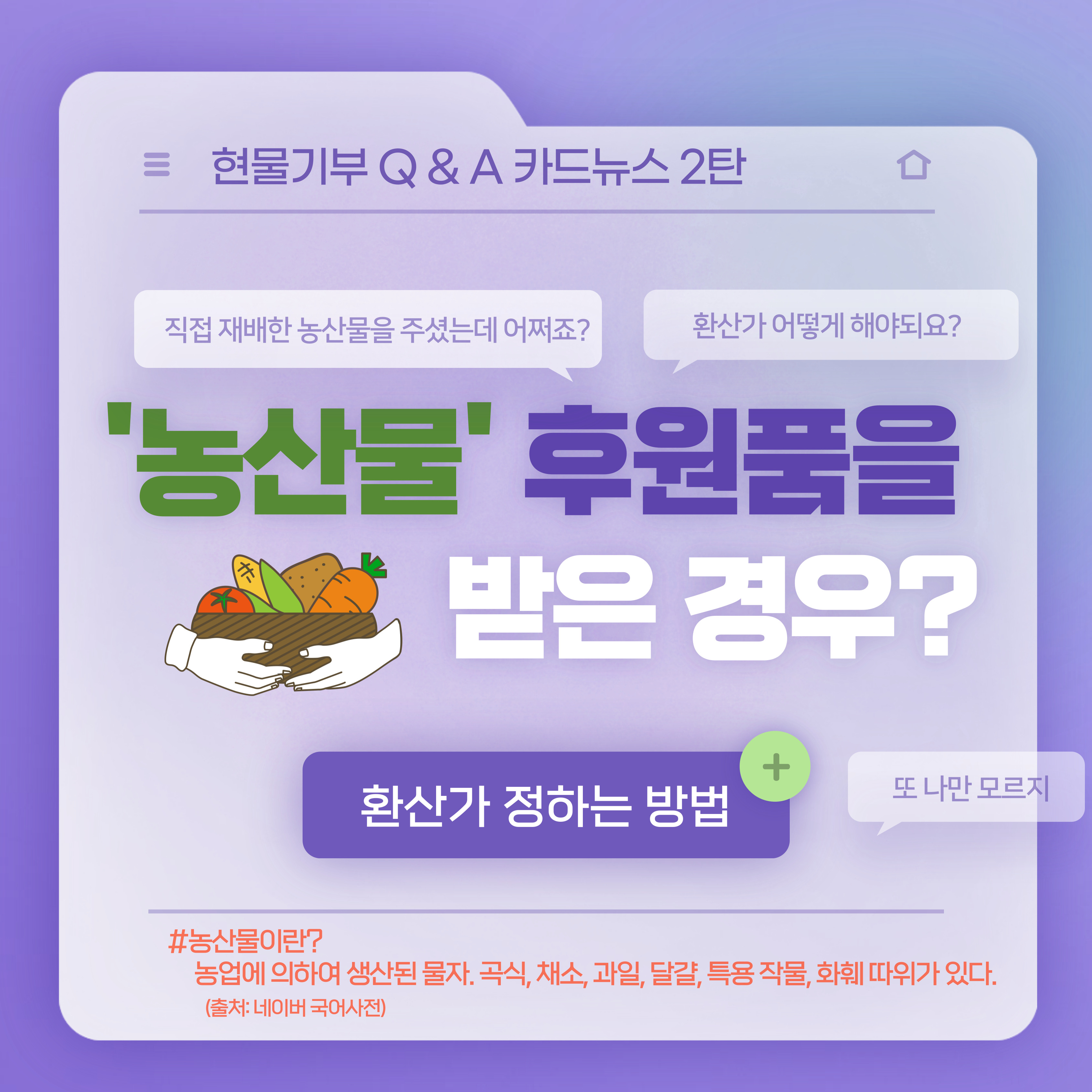 현물기부 Q&A _2. 농산물 후원받을 때지식 공유 2021. 9. 25. 22:29